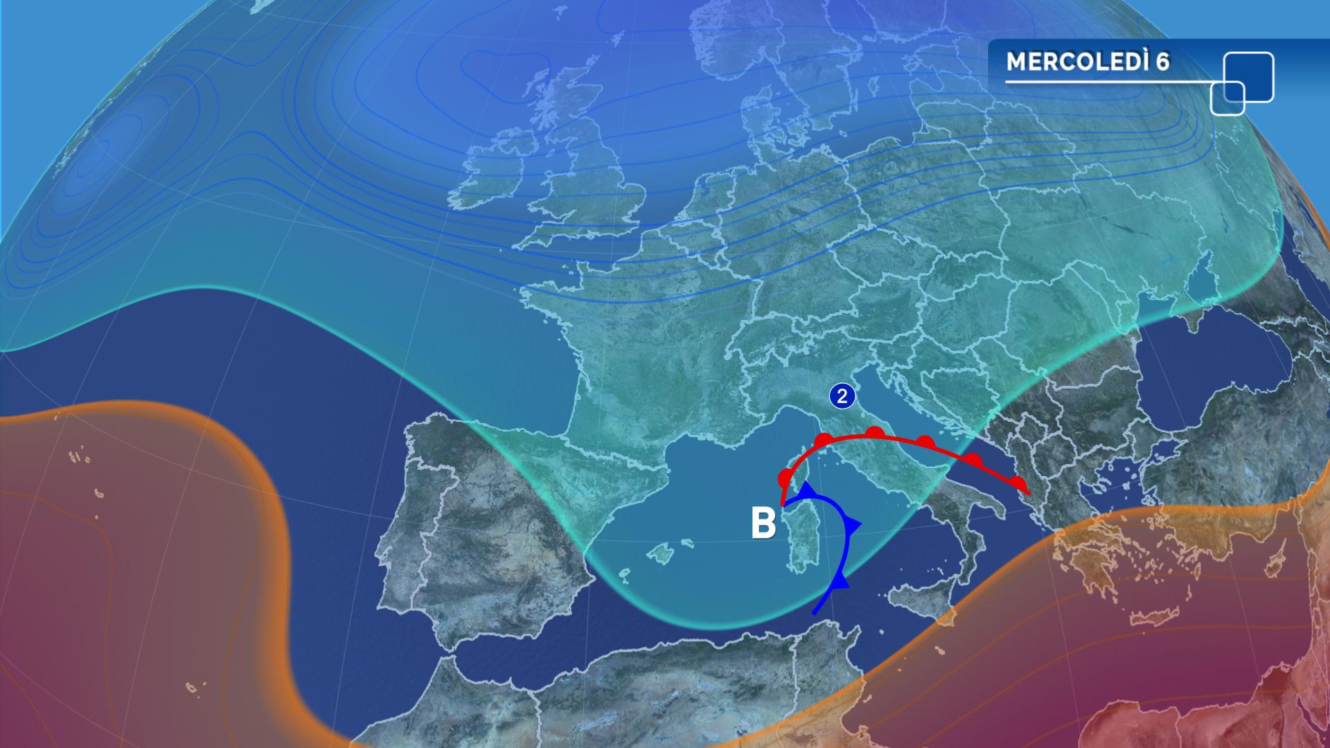 Tempo per lo più soleggiato sulle regioni settentrionali, sulla Puglia meridionale, in Calabria e Sicilia, con tendenza ad aumento della nuvolosità dal pomeriggio. Cielo molto nuvoloso in Sardegna e nel resto del Centro-Sud. Nel pomeriggio ancora rovesci in Sardegna, piogge diffuse su gran parte del Centro (eccetto l’estremo nordovest della Toscana), piogge isolate sul nord della Puglia e della Campania. La sera rovesci e possibili temporali sulla Campania, piogge in attenuazione sulle regioni centrali e in Sardegna.