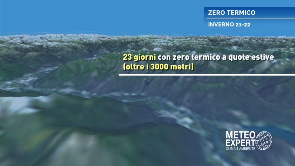 In questo quadro, a peggiorare la situazione c’è stato il persistere dell’anticiclone. «Come se non bastasse infatti la poca neve che abbiamo registrato in montagna, non ha avuto le condizioni ottimali per conservarsi bene a causa di ripetuti afflussi di aria temperata, e addirittura in alcuni casi afflussi di aria calda di matrice sub-tropicale che hanno spinto lo zero termico a quote eccezionalmente elevate. Su un totale di 75 giorni di inverno meteorologico, ben 23 giorni sono stati accompagnati da uno zero termico a quote superiori ai 3000 metri, quote che di solito osserviamo nella stagione estiva. E difatti in montagna abbiamo avuto giornate eccezionalmente calde, con nuovi record di temperatura minima».