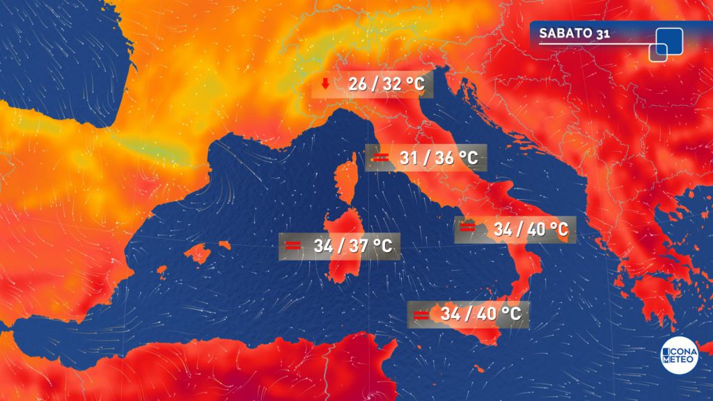 L’Anticiclone africano non demorde, in particolare sulle regioni meridionali dove ormai i picchi di 40°C e oltre sono sempre più diffusi. Nei giorni a seguire non si profilano cambiamenti di rilievo, se non per la Sardegna e parte del Centro dove la calura asfissiante risulterà parzialmente attenuata a partire da domani. Al Sud e nelle Isole, invece, il clima sarà rovente anche nella prima parte della prossima settimana.