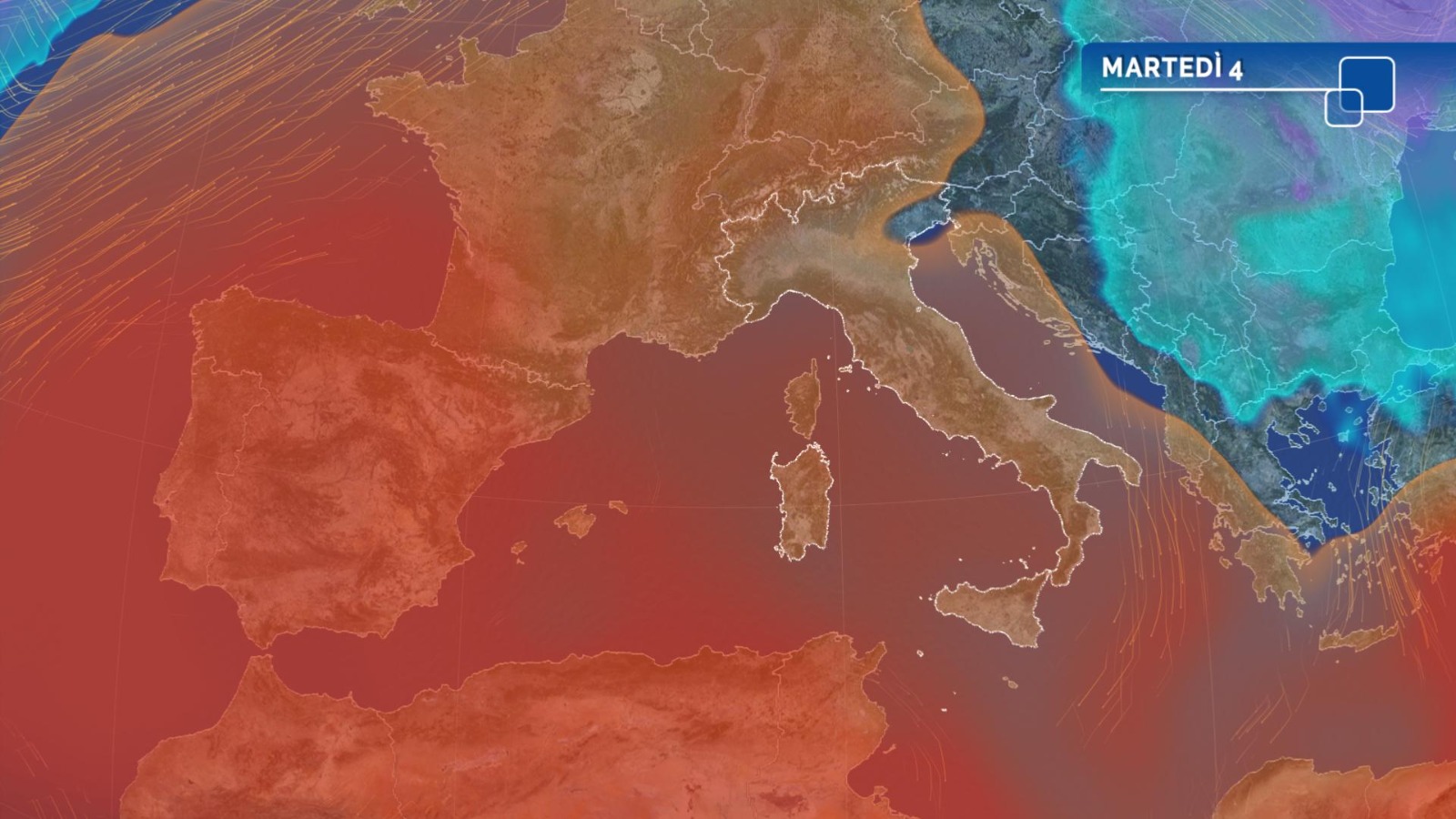 Temperature minime senza grandi variazioni al Nord, in leggera diminuzione al Centro-Sud; massime stazionarie o in lieve calo, a basse quote per lo più comprese tra 21 e punte di 25-26 gradi.