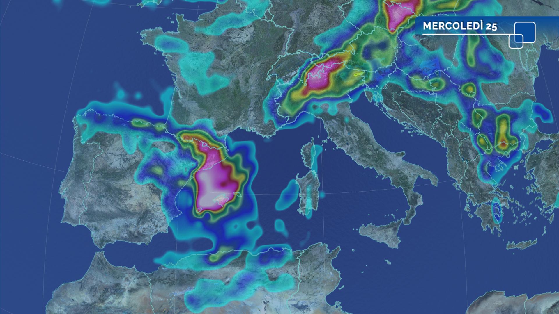 Le condizioni meteo sull’Italia vedono ancora maltempo al Nord oggi, mercoledì 25 maggio mentre al Sud e in Sicilia insiste il caldo anomalo con tempo dunque più stabile e soleggiato. Nel frattempo un vortice di bassa pressione (n.7) si sta approfondendo sul Mediterraneo occidentale e nelle prossime 24-48 ore graviterà intorno alla Sardegna dove si avrà un aumento dell’instabilità. Nell’ultima parte di settimana, il trasferimento di questo vortice verso le regioni centro meridionali e il concomitante ingresso di aria più fresca al Centro-Nord, dovrebbero porre fine alla prima ondata di caldo della stagione un po’ ovunque.
