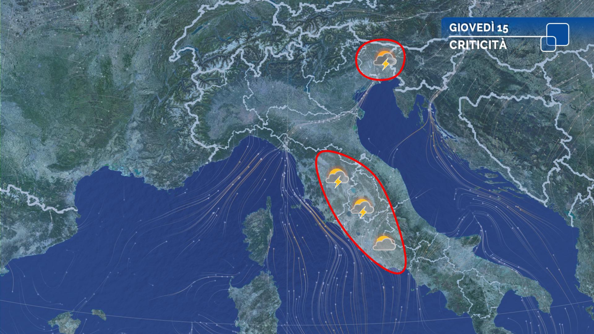 Nuvolosità variabile, con schiarite anche ampie su Sicilia, Calabria, coste centrali adriatiche, Romagna, Emilia meridionale e sulle regioni nord-occidentali. Al mattino possibilità di qualche rovescio e temporali isolati su Veneto orientale e Friuli Venezia Giulia, tra l’estremo Levante Ligure e l’alta Toscana, in Campania e sulla Sardegna. Nel pomeriggio rovesci e temporali sul Nordest e in Campania; a carattere più isolato su Lombardia orientale, alta Toscana, Umbria, basso Lazio, Basilicata, Puglia centrale e Sardegna meridionale. Tra la sera e la notte tendenza ad un ulteriore marcato peggioramento, con piogge e temporali in intensificazione, su Emilia settentrionale, Lombardia meridionale e orientale, Veneto e Friuli.