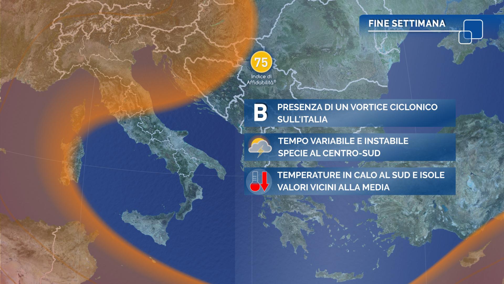 Nel fine settimana i due sistemi perturbati convergeranno in un’unica circolazione depressionaria con centro tra il Tirreno e la Sicilia. Il tempo rimarrà dunque instabile soprattutto al Centro-Sud mentre al Nord si profila un parziale miglioramento con solo qualche fenomeno occasionale.