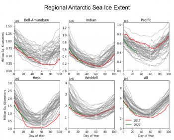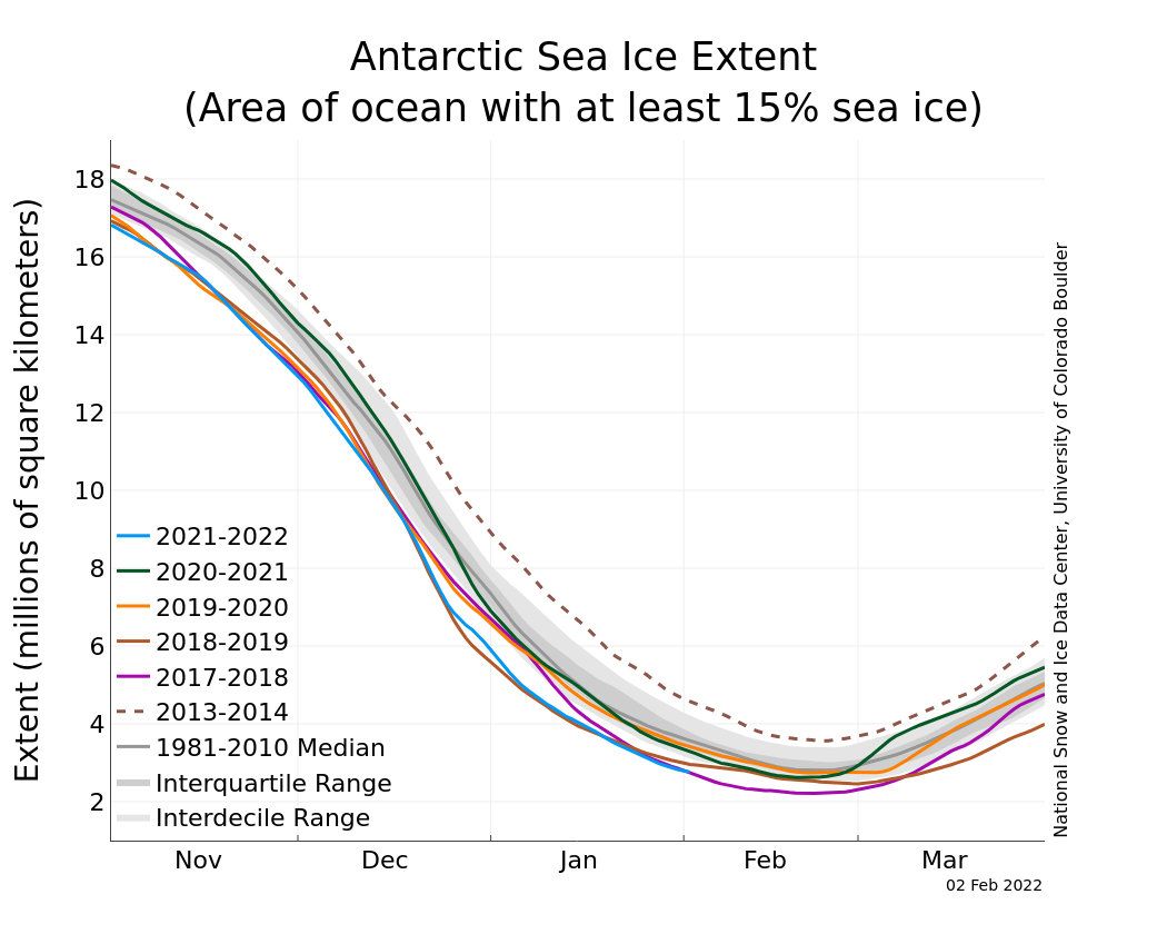 Il record negativo del ghiaccio marino antartico in un certo senso ha colto di sorpresa gli scienziati. Da quando sono iniziate le misurazioni satellitari, infatti, i due poli si sono comportati in maniera differente. Mentre il ghiaccio marino sta scomparendo rapidamente nell’Artico, i satelliti avevano mostrato un leggero miglioramento per quello antartico, contraddicendo di fatto alcuni modelli climatici. La copertura meridionale nel 2014 aveva infatti raggiunto un record prima di crollare ai minimi storici nel 2017 e appunto nel 2022.
