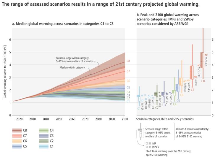 Senza una netta svolta delle politiche climatiche, le emissioni di gas serra potrebbero aumentare ulteriormente, provocando un riscaldamento globale di 3,2°C (2.2 to 3.5) entro il 2100.