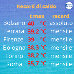Altra storica ondata di caldo quella di inizio agosto del 2017: coinvolse un po’ tutta l’Italia ma soprattutto l’Emilia Romagna, la Sardegna e il Centro Italia: a Roma per ben 10 giorni consecutivi le temperature massime non scesero mai sotto i 37 gradi con un picco di 40 il 2 agosto. Eccezionale è stato anche il luglio del 2015, il più caldo della storia recente.