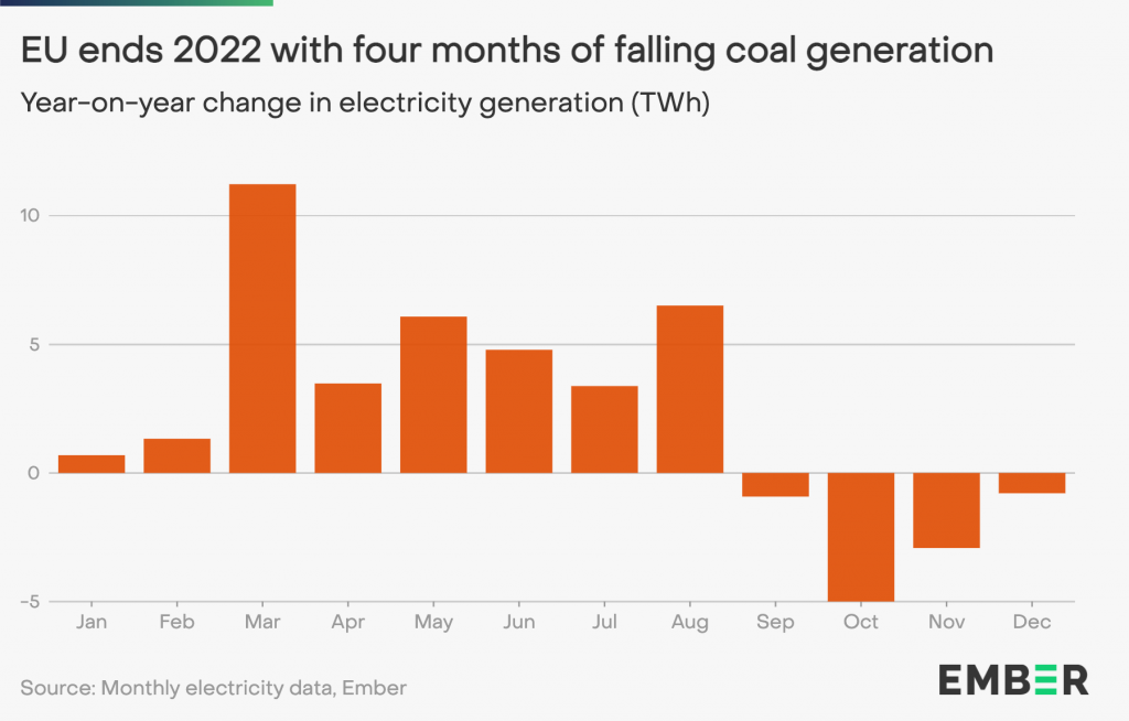 Sulla scia della crisi energetica è cresciuta anche la quantità di energia generata dal carbone, rilevano gli esperti: la sua produzione è aumentata del 7 per cento, e questo ha provocato anche maggiori emissioni del settore energetico dell’UE (+3.9 per cento nel 2022 rispetto al 2021).