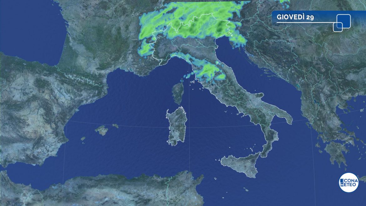 Giovedì, in particolare, le piogge inizialmente isolate interesseranno dapprima il Nord-Ovest, l’alto Veneto, la Toscana, il Lazio e la Sardegna, ma nel corso della giornata diventeranno sempre più intense e diffuse investendo buona parte del Nord e le regioni centrali tirreniche. Ci sarà il rischio di rovesci intensi e temporali, mentre ad alta quota sulle Alpi torneranno nevicate a tratti moderate.