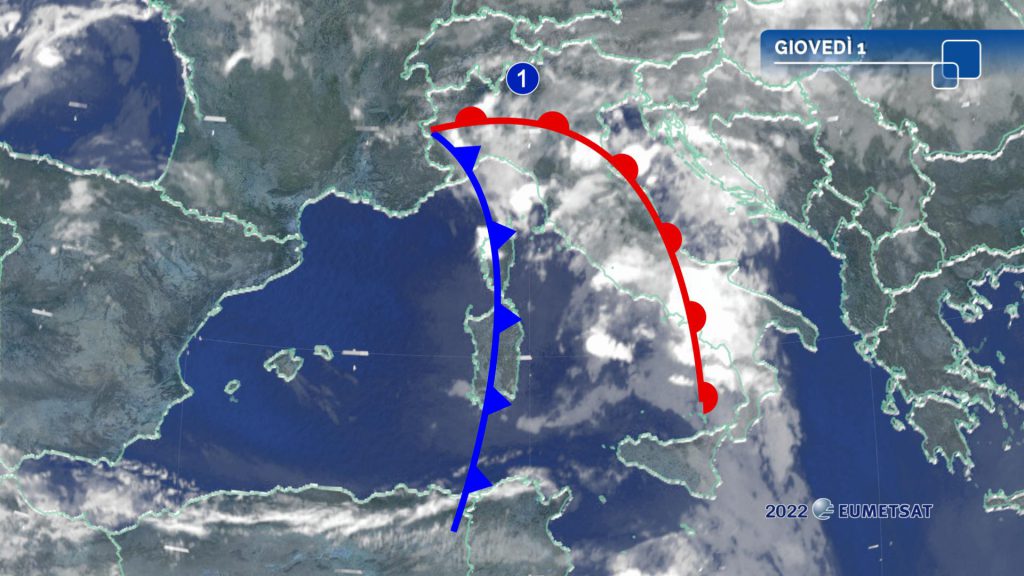 Nella notte e nelle prime ore del mattino possibili rovesci in Liguria, sul Piemonte e sulla Lombardia occidentale. In giornata qualche temporale sparso in Toscana, in Umbria e localmente nelle Marche; rovesci a carattere isolato sulle Alpi e sull’Emilia. Al Sud e in Sicilia tempo prevalentemente soleggiato, nuvolosità passeggera senza piogge significative sulla Sardegna.