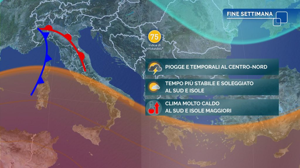 Dopo una giornata di venerdì caratterizzata da una bassa probabilità di piogge in tutto il Paese, nel fine settimana il Sud e la Sicilia verranno interessati dalla rimonta dell’alta pressione accompagnata da aria calda, mentre il Nord e parte del Centro torneranno ad essere esposti a correnti più umide e localmente instabili.