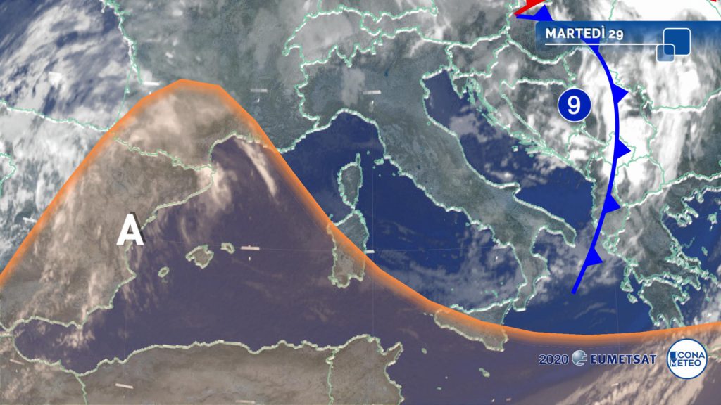 Il mese di settembre si chiude con una giornata caratterizzata da tempo stabile; tuttavia al mattino non mancherà un po’ di nuvolosità, anche compatta, su Liguria e coste del Lazio. Nel corso della giornata si avrà nuvolosità variabile quasi ovunque, con ampi spazi soleggiati soprattutto in Valle d’Aosta, Sardegna e Puglia. Non si prevedono precipitazioni di rilievo.