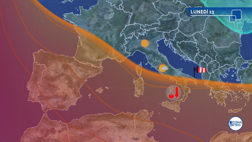 L'afflusso di venti più freschi sull'Italia attenua il caldo anche al Sud e nelle Isole. Domani torna il rischio di temporali