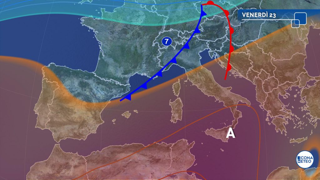 La perturbazione numero 7 del mese interesserà dapprima il Nord e la Toscana per estendersi in seguito anche al Centro e al Sud