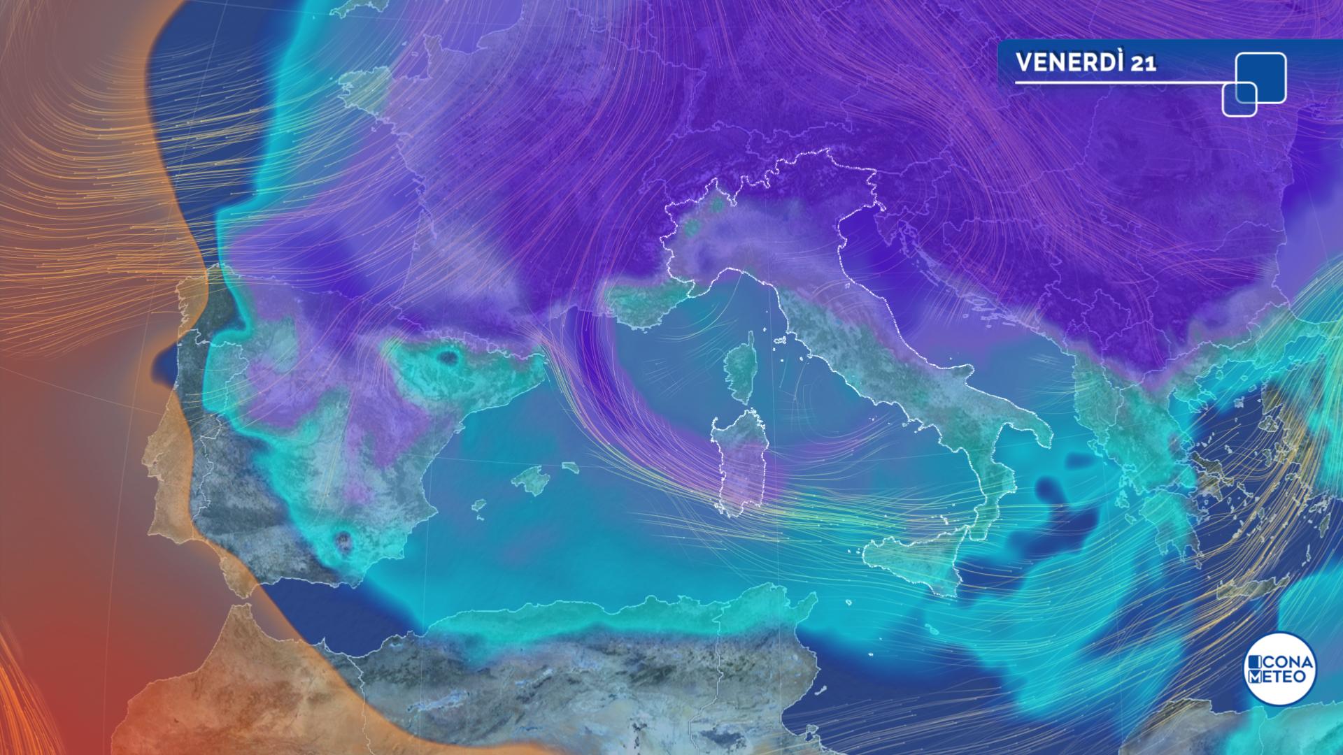 Nei prossimi giorni si profila dunque uno scenario meteo più movimentato, e dopo il transito della perturbazione attesa domani venerdì faremo i conti con un altro fronte freddo in discesa da nord, che attraverserà l’Italia accompagnato da una massa d’aria gelida.