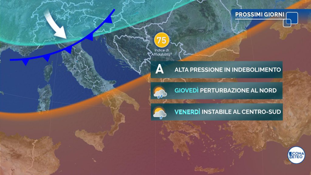 Le condizioni meteo nella parte finale della settimana saranno influenzate dal passaggio di due perturbazioni. Anche nel prossimo weekend il tempo risulterà a tratti instabile, con vento in intensificazione e temperature in calo (in alcune zone anche sensibile) per l’arrivo di aria più fredda da nord-est.