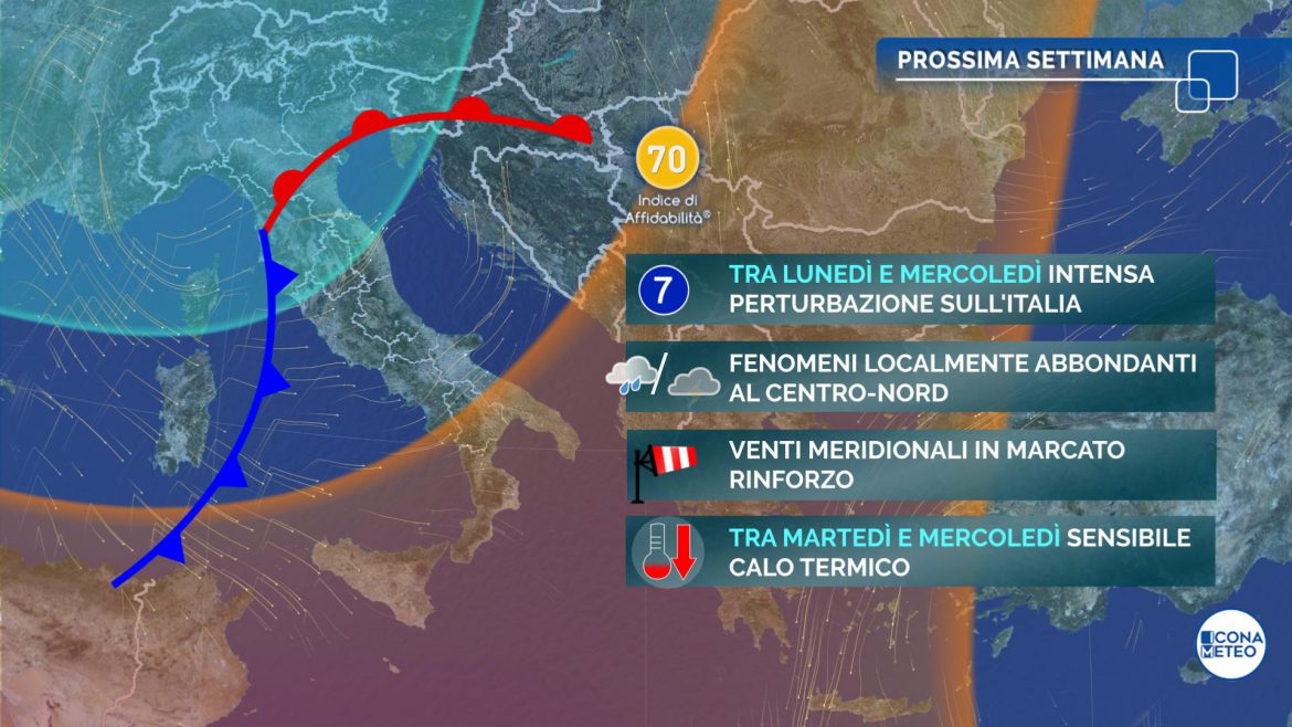 Martedì il sistema perturbato dovrebbe coinvolgere anche il resto del Nord, la Sardegna e parte dell’Italia centrale.
