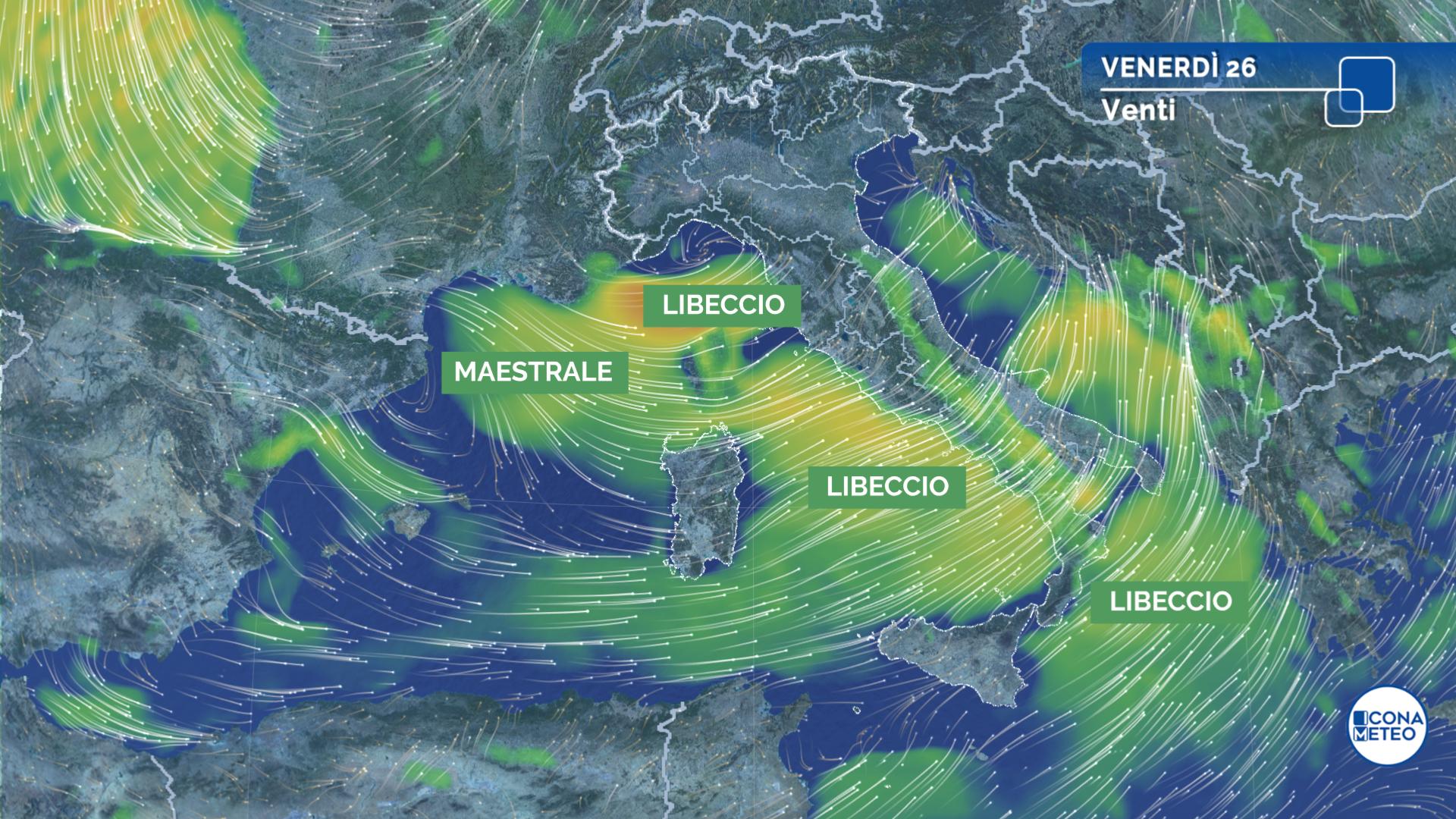 Da segnalare soprattutto il forte Libeccio sui versanti tirrenici e la Sardegna, che tra oggi e domani soffierà con raffiche di burrasca che sull’isola, sulla Calabria e sul basso versante tirrenico potranno superare i 70-80 km orari. Agitati i mari di ponente e lo Ionio, con il rischio di mareggiate sulle coste più esposte.