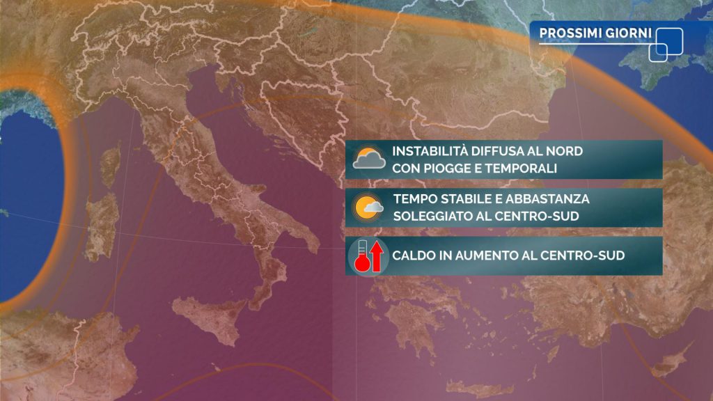 Forti temporali in arrivo al Nord, caldo intenso su Centro-Sud e Isole: le previsioni meteo
