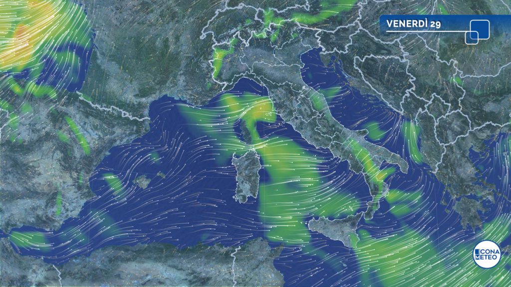 La massa d’aria che accompagna questo sistema perturbato sarà ancora temperata e umida, con un clima che dunque resterà mite per il periodo, soprattutto al Centro-sud e nella giornata di sabato: l’anomalia termica in tutto il Paese sarà anche nell’ordine di 3-6 gradi.