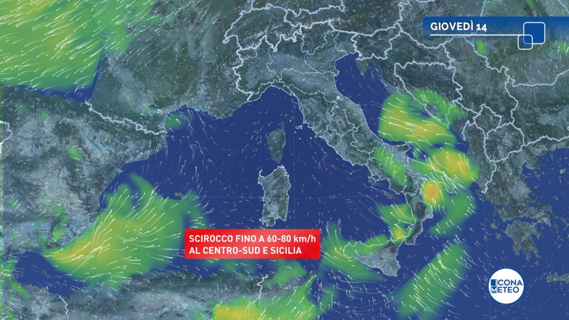 Venti: da tesi a localmente forti meridionali al Sud, sulla Sicilia e sui mari prospicienti e sull’Adriatico centrale, con raffiche fino a 60-70 Km/h; venti deboli altrove. Mari mossi o molto mossi, fino ad agitato l’Adriatico meridionale.
