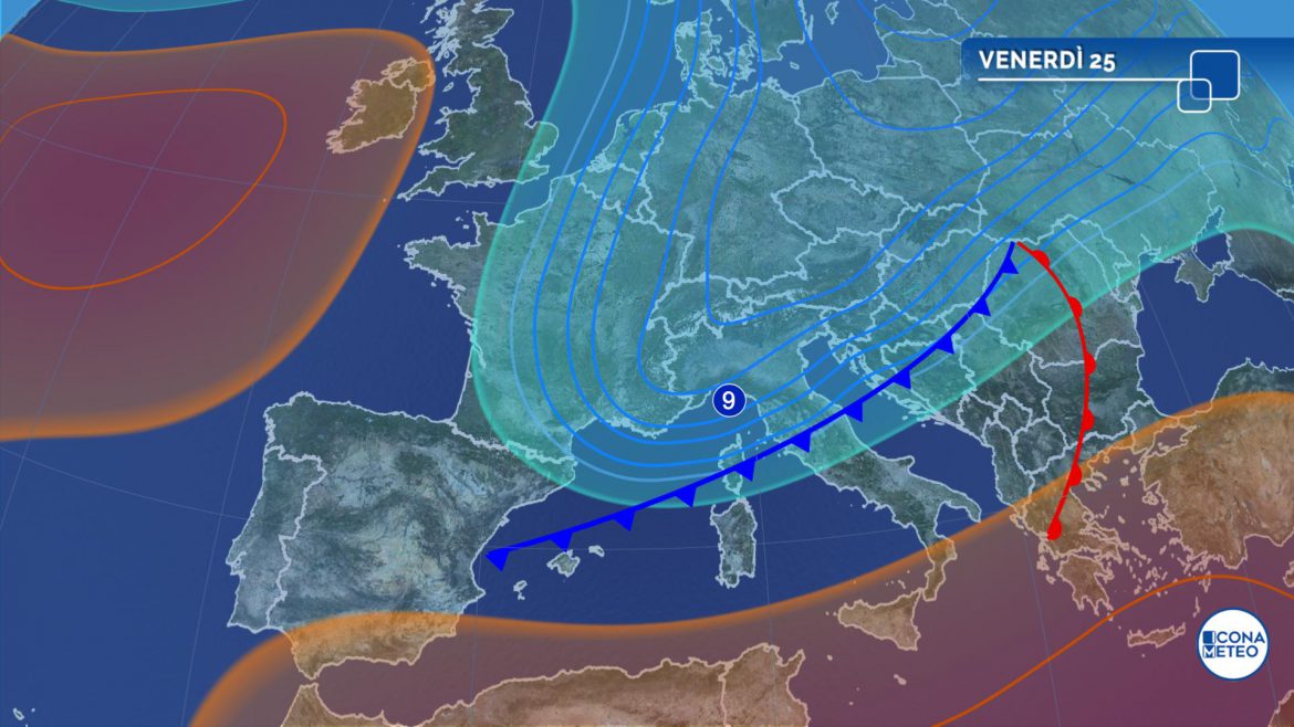 La stabilità atmosferica e il clima eccezionalmente mite di questi giorni sono agli sgoccioli, e proprio a partire da Natale assisteremo a una decisa svolta meteo. Una perturbazione investirà infatti l’Italia venerdì 25 dicembre, dando il via a un peggioramento delle condizioni meteo che sarà accompagnato dall’irruzione di correnti gelide provenienti dall’artico. Prepariamoci dunque a un brusco aumento del freddo, con piogge, venti intensi e anche nevicate fino a bassa quota.