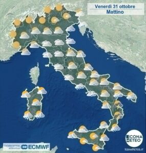 Dopo le piogge e i temporali che hanno colpito buona parte del Paese nelle ultime ore, domani le condizioni meteo resteranno instabili, soprattutto nelle regioni centro-meridionali che nel giorno di Halloween correranno un maggiore rischio di piogge. In generale sull’Italia il tempo sarà variabile, con molte nubi e piogge ma anche qualche pausa asciutta e temperature tutto sommato miti per il periodo.