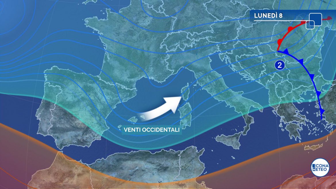 Le previsioni meteo per domani, lunedì 8 febbraio