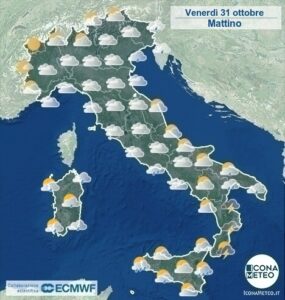 Altrove, lo scenario meteo di Halloween sarà più variabile: residui rovesci al Nord, in attenuazione entro sera, e qualche pioggia occasionale tra Toscana, Lazio e Sardegna. I venti soffieranno tesi di Maestrale sui canali delle Isole e di Scirocco sul mar Ionio e sul basso Adriatico, con mari mossi o molto mossi.
