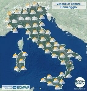 Le previsioni meteo per oggi, giorno di Halloween, confermano uno scenario instabile in molte regioni con il rischio di maltempo localmente intenso. La responsabile è l’ultima perturbazione di ottobre, che ha attraversato il Centro-Nord spostandosi in direzione sud-est, e oggi porterà piogge e temporali in diverse zone d’Italia con maltempo soprattutto al Sud.