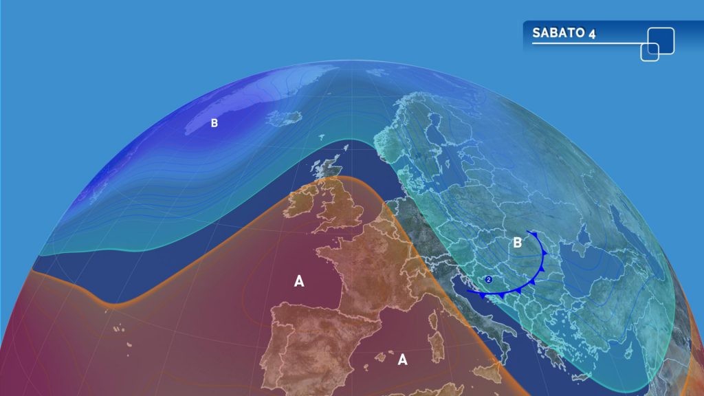 La giornata di oggi (sabato) sarà ancora caratterizzata da temperature superiori alla norma, specialmente sulle pianure del Nordovest italiano, e da condizioni di prevalente stabilità atmosferica. I primi segnali di un cambiamento sono in vista sulle regioni centro-meridionali, in particolare al Sud, dove questo pomeriggio il veloce passaggio di una debole perturbazione a carattere di fronte freddo (la n.2) sarà seguito da un marcato calo delle temperature e dal rinforzo di venti nettamente più freddi dai Balcani. Da domenica e nel corso della prossima settimana l’aria fredda proveniente dall’Europa orientale si propagherà a tutto il Paese, dando il via ad un periodo con temperature sensibilmente inferiori alla norma. Trattandosi di una massa d’aria continentale poco umida, e a causa della persistenza di un potente anticiclone sull’Europa centrale, questa ondata di freddo non sarà accompagnata da precipitazioni significative.