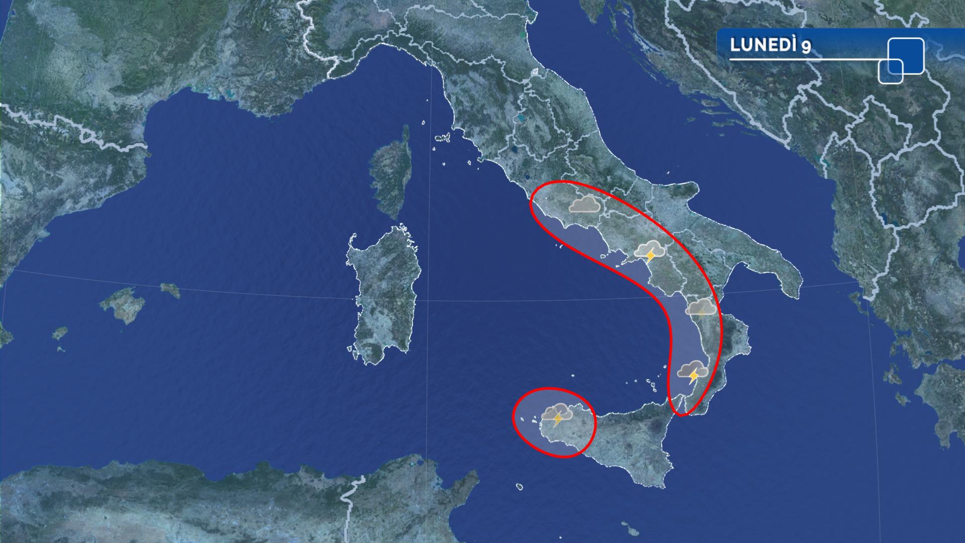 Cielo inizialmente nuvoloso con piogge sparse su coste abruzzesi, Molise, Puglia, Basilicata, Calabria e nord della Sicilia; possibili rovesci o temporali sulla Puglia settentrionale e nel settore tirrenico della Calabria e della Sicilia; quota neve sui relativi rilievi appenninici dai 900 ai 1200 metri. Tempo più soleggiato nel resto d’Italia, con solo delle velature di passaggio e qualche addensamento più compatto sulle Alpi di confine e in Sardegna. Nel pomeriggio schiarite in Abruzzo ed entro sera tendenza a un’attenuazione dei fenomeni anche nel resto del Sud.