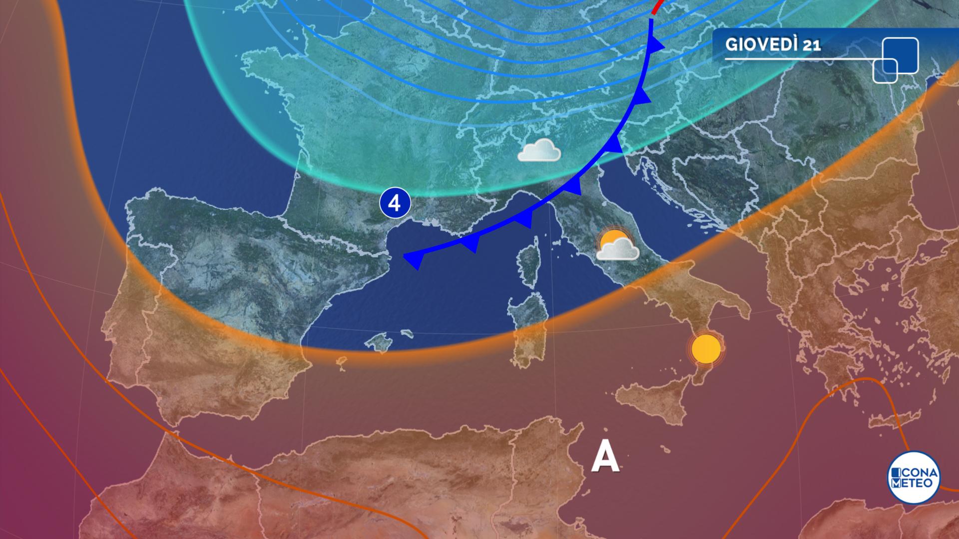 Alla fine di giovedì arriverà anche un nuovo sistema perturbato, il cui transito sarà segnato da un peggioramento meteo più sensibile anche nelle regioni meridionali e dall’attivazione di venti freddi: