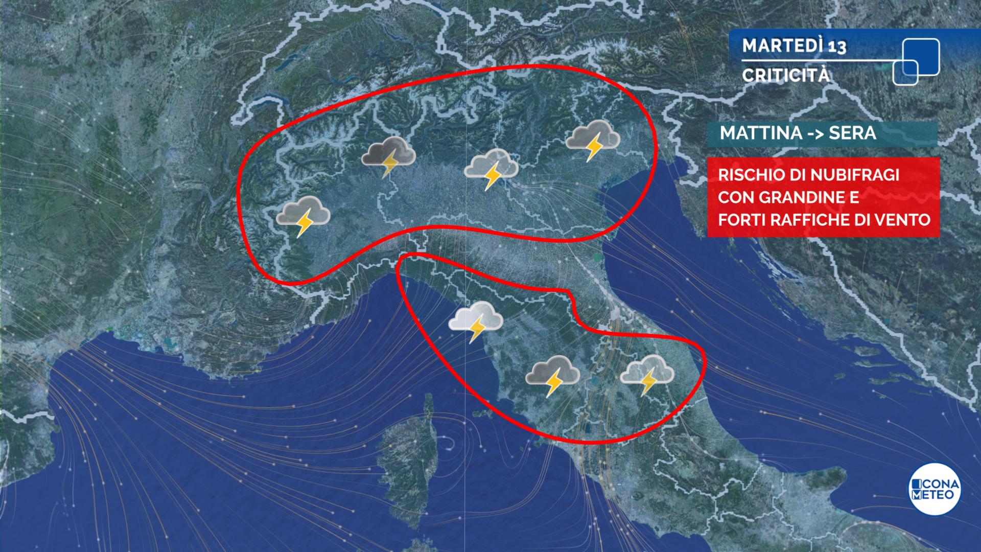 VENERDÌ PIOGGE E TEMPORALI AL CENTRO-NORD