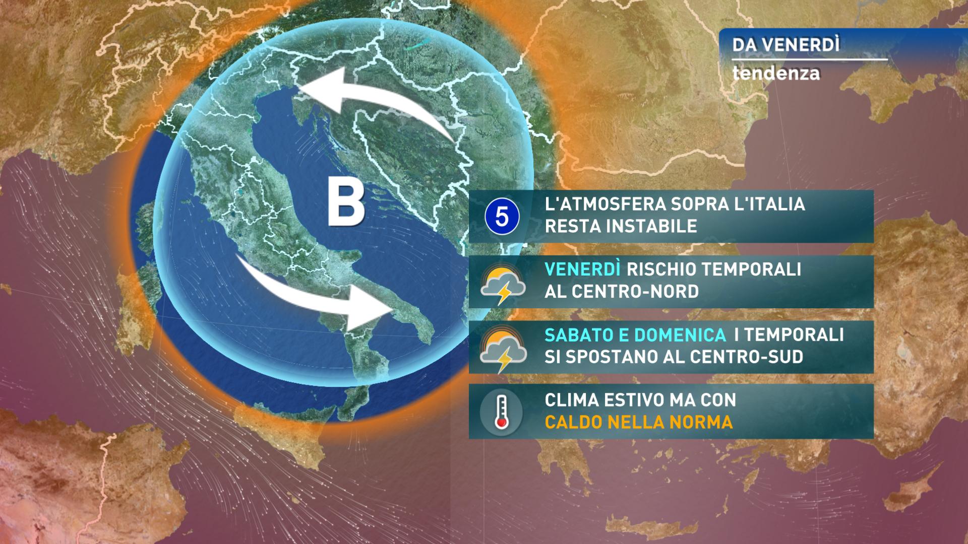 TENDENZA METEO PER L’ULTIMA PARTE DELLA SETTIMANA: L’INSTABILITÀ ATMOSFERICA INSISTE E SI ESTENDE ANCHE AL SUD