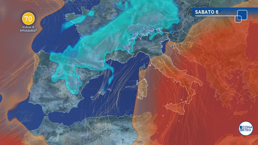 Sabato 6 piogge sparse al Centro-Sud