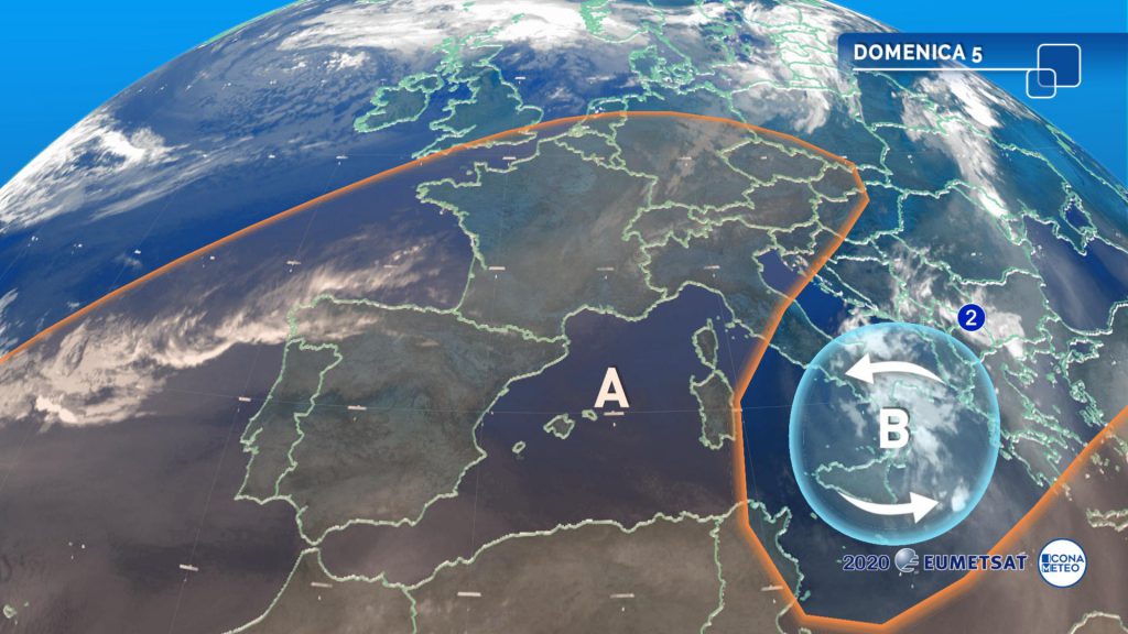 Domani si avrà tempo in prevalenza soleggiato sull’insieme del Paese. Nel corso della giornata nubi in aumento nel settore alpino e prealpino centro-orientale, dove nel pomeriggio si potranno sviluppare rovesci o temporali. In serata e nella notte rovesci e temporali sulla pianura veneta e sul Friuli Venezia Giulia; nella notte brevi rovesci anche sull’Emilia Romagna.
