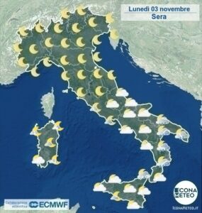 Da martedì 4 novembre l’alta pressione tornerà a rinforzarsi, riportando condizioni di tempo stabile e soleggiato su quasi tutto il Paese. Le previsioni meteo indicano un rialzo delle temperature, che torneranno sopra la media stagionale. Nelle ore più fredde non mancheranno però nebbie o foschie nelle valli interne e sulla pianura padana.