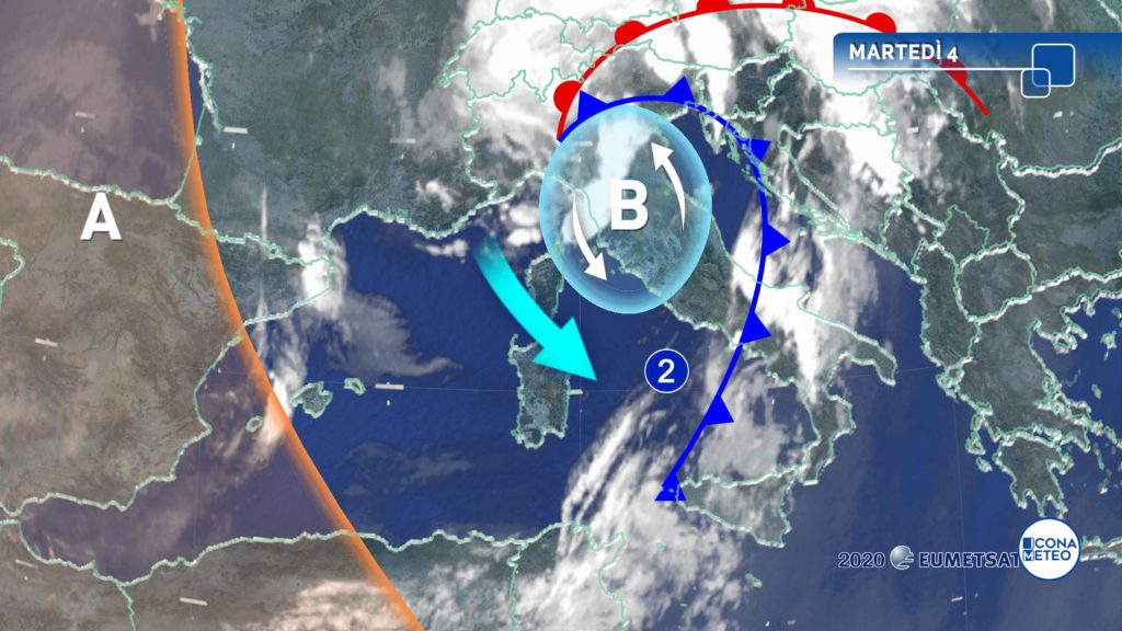 Domani al Nord il cielo sarà sereno sulle regioni occidentali, mentre su quelle orientali si potranno osservare ancora un po’ di nubi, accompagnate da piogge residue al mattino sulla Romagna.