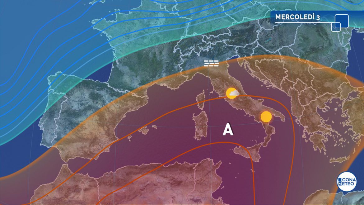 Da mercoledì la svolta meteo sarà più evidente, soprattutto per il Centro-Sud. La giornata sarà infatti nuvolosa in gran parte del Nord, in Toscana e in Umbria. Ci sarà il rischio di qualche debole pioggia o pioviggine in Liguria, sud-est del Piemonte, ovest dell’Emilia, Lombardia meridionale, Venezia Giulia ed estremo nord-ovest della Toscana. Nel resto d’Italia il cielo sarà in prevalenza sereno, con l’eccezione di un po’ di nuvole irregolari su Lazio, Campania e Calabria, e schiarite ampie si osserveranno anche sulle aree alpine e sul Piemonte occidentale.