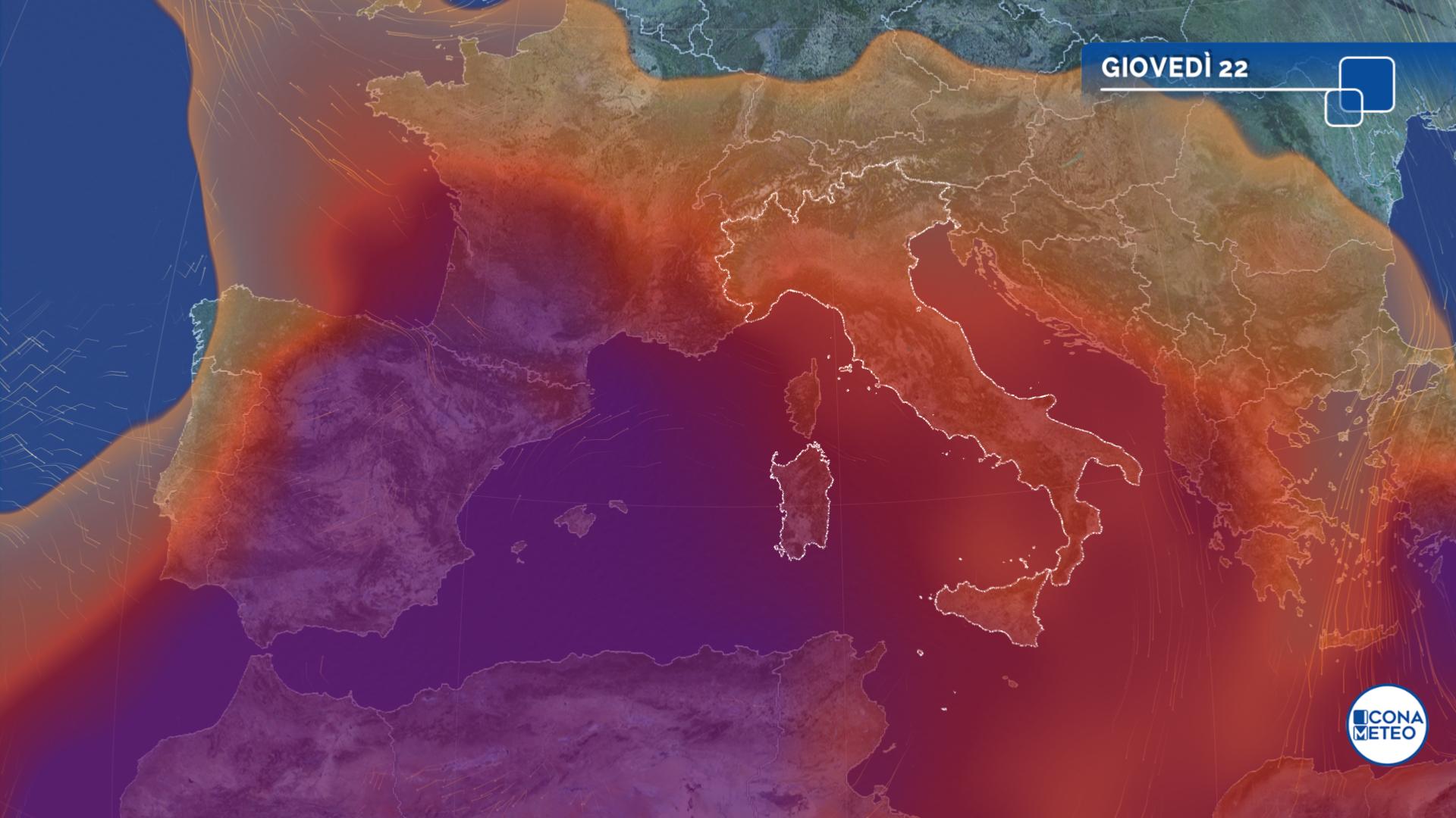 Le condizioni meteo restano per lo più stabili sull’Italia, che trovandosi ai margini dell’anticiclone nord-africano sta vivendo giornate calde ma senza temperature eccezionalmente elevate. L’alta pressione al momento è infatti centrata con più decisione sulla Penisola Iberica e la Francia, dove in questi giorni si farà sentire il caldo più intenso: soprattutto in Spagna la colonnina di mercurio si spingerà oltre i 40 gradi.