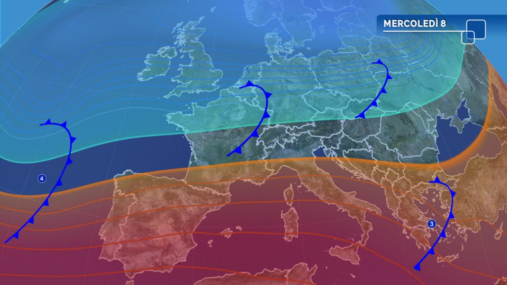 Il tempo sull’Italia è determinato da un flusso di correnti occidentali relativamente umide e temperate di origine atlantica. I sistemi nuvolosi trasportati da queste correnti non porteranno le tanto attese precipitazioni sulle nostre regioni settentrionali nemmeno questa settimana. Dopo il transito della debole perturbazione numero 3, accompagnata da modeste piogge sulle regioni tirreniche, si conferma l’arrivo di un’altra e più intensa perturbazione venerdì al Centrosud. Poi nel fine settimana le correnti tenderanno a disporsi da nordovest e porteranno qualche fenomeno solo nelle Alpi di confine (quota neve elevata), senza precipitazioni di rilievo nel resto d’Italia. Le temperature nella seconda parte della settimana sono previste in rialzo, con valori di nuovo ben oltre la norma.