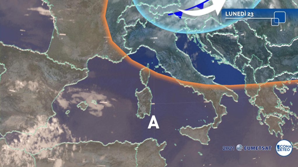 Al Nord il rischio di rovesci e locali temporali sarà maggiore sulle Alpi occidentali, localmente anche sulla vicina pianura piemontese, nell’entroterra Ligure, sul nord della Lombardia e in Trentino; ampie schiarite sulle pianure del Nordest e in Emilia. Al Centro rovesci e temporali sparsi su bassa Toscana, Umbria meridionale, Marche, Abruzzo e Lazio, in temporanea attenuazione nel pomeriggio sulle Marche quando tenderanno ad estendersi verso il Molise. Al Sud e sulle isole: possibilità di isolati rovesci o brevi temporali sul nord della Puglia, nuvolosità in aumento sulla Campania settentrionale; tempo generalmente soleggiato sulle isole e sul resto del Sud.
