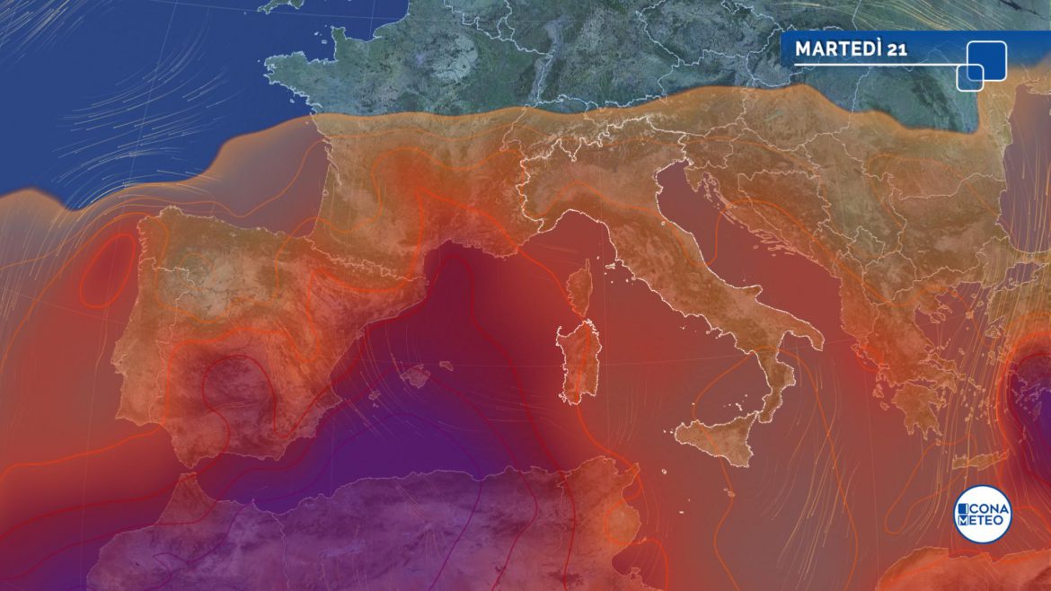 Temperature in leggero aumento con valori massimi per lo più compresi fra 27 e 32 gradi, e locali punte di 33 gradi nei fondovalle alpini, sulla bassa pianura Padana e nelle zone interne del Centro-Sud e delle Isole.