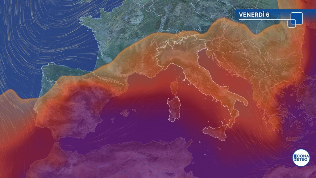 Già nel weekend, però, si farà strada l’alta pressione nord-africana al Centro-Sud, con il suo carico di aria torrida che soprattutto da domenica darà inizio alla quarta ondata di caldo della stagione. Sulle regioni settentrionali, tra domani e domenica, una nuova perturbazione porterà piogge e temporali principalmente sulle Alpi e l’alta Pianura Padana.