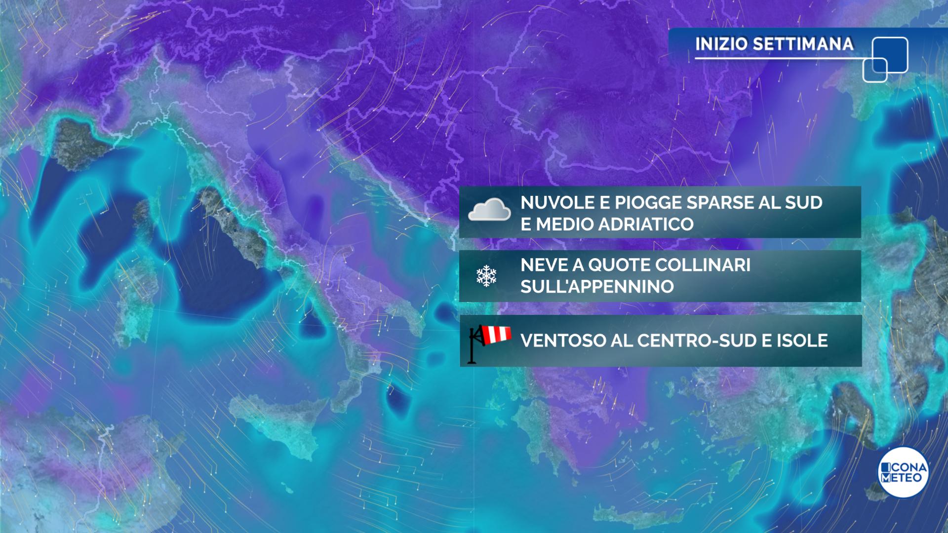 Meteo, sfuriata invernale a inizio settimana: lunedì l’apice del maltempo con neve a bassa quota e raffiche a 100 km orari