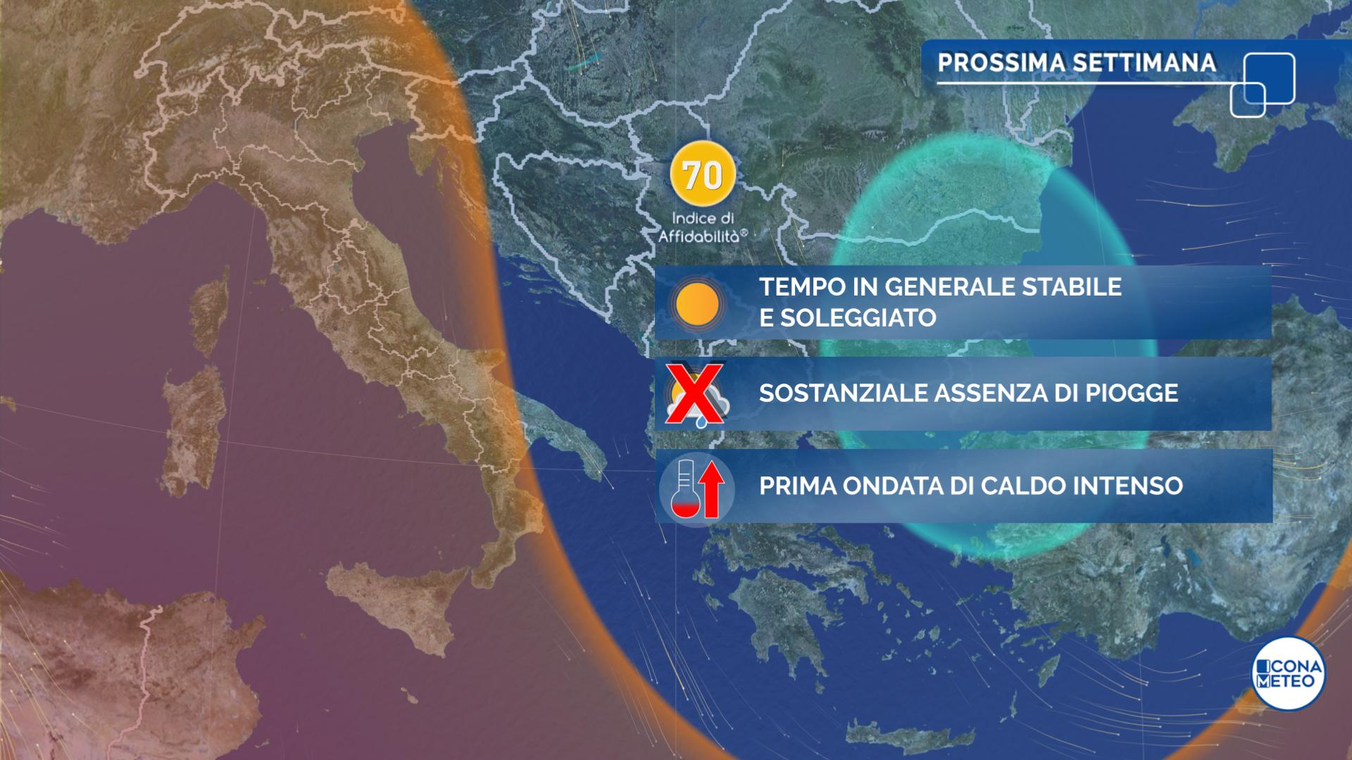 Anche per l’inizio della prossima settimana si profilano condizioni meteo stabili e per lo più soleggiate grazie alla protezione dell’anticiclone.