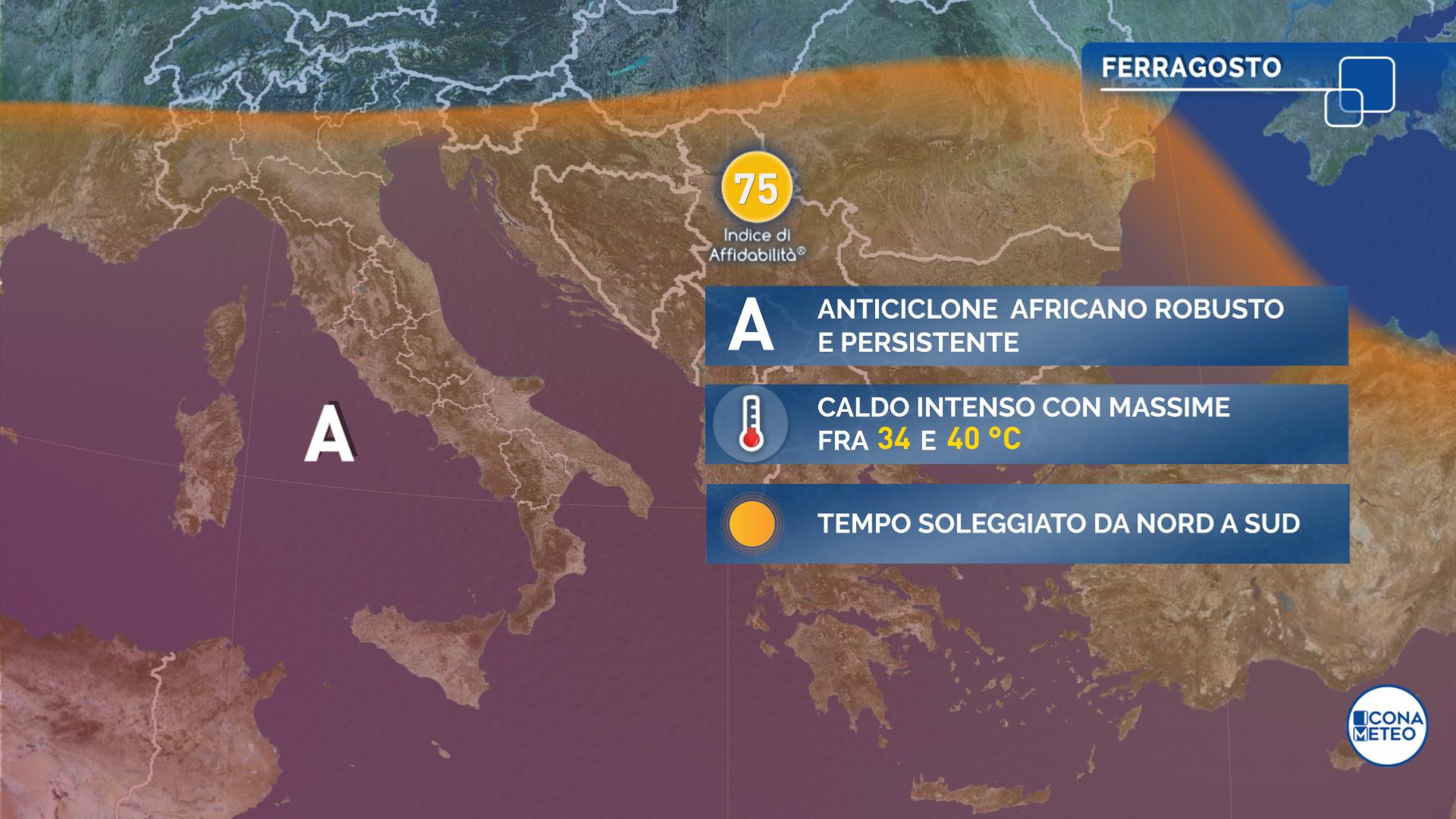 Il caldo estremo dominerà la scena meteo per tutta la settimana, insistendo dunque anche nel weekend di Ferragosto. L’ondata di calore provocata dall’anticiclone africano già in questi giorni proseguirà infatti su tutto il Paese, che da Nord a Sud dovrà fare i conti con un clima rovente e afoso: le temperature massime potranno arrivare ancora intorno ai 40 gradi.