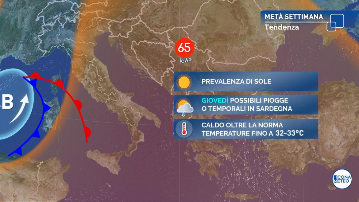 Nei giorni successivi le condizioni meteo resteranno generalmente più stabili e soleggiate, con un clima estivo e temperature in aumento da Nord a Sud. Nella giornata di giovedì, con il probabile avvicinamento del vortice di bassa pressione, tornerà il rischio di piogge e temporali sulla Sardegna.