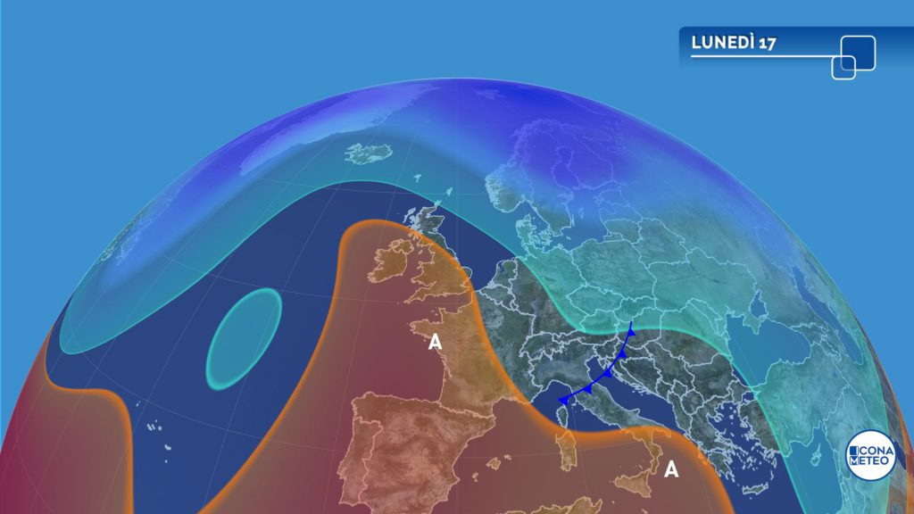 Tendenza per l’inizio della prossima settimana: l’alta pressione si indebolisce temporaneamente, tempo variabile sul medio Adriatico e al Sud