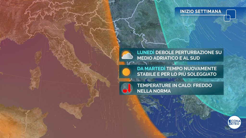 Un vasto campo di alta pressione sta progressivamente inglobando l’intero Paese, determinando dunque una fase stabile e un importante rialzo termico soprattutto nel weekend. Le anomalie termiche più evidenti si verificheranno ancora una volta sulle Alpi, dove il clima risulterà eccezionalmente mite per la stagione. Questa situazione di generale stabilità potrebbe proseguire fino a metà della prossima settimana, con una possibile e temporanea interruzione solo nella giornata di lunedì.